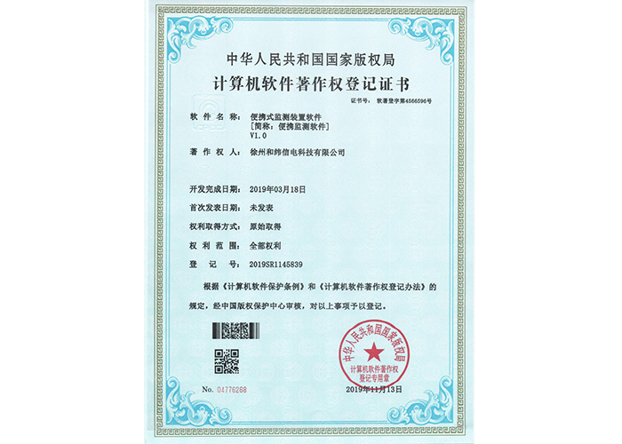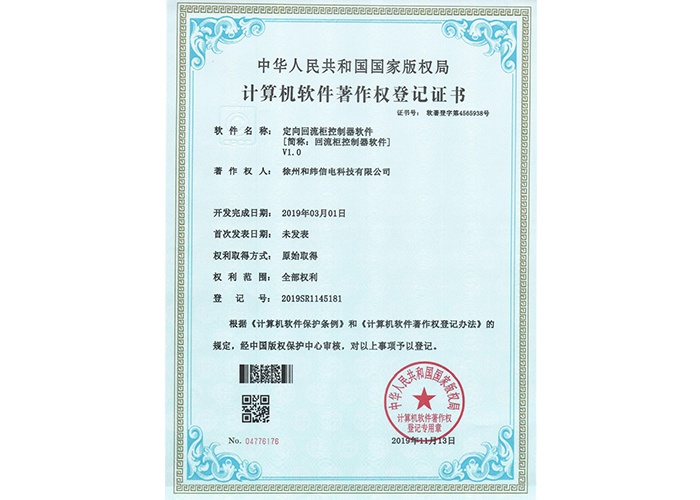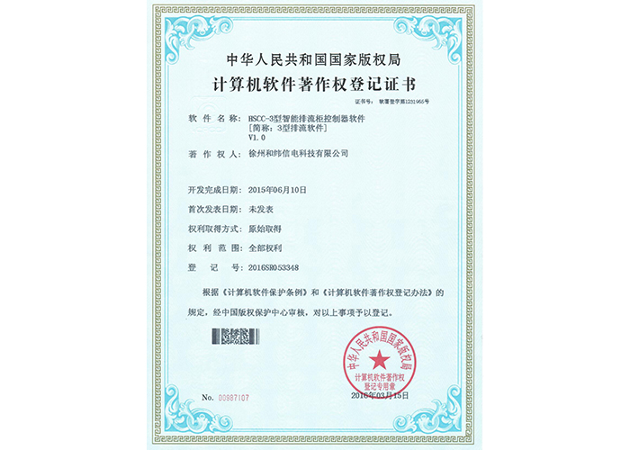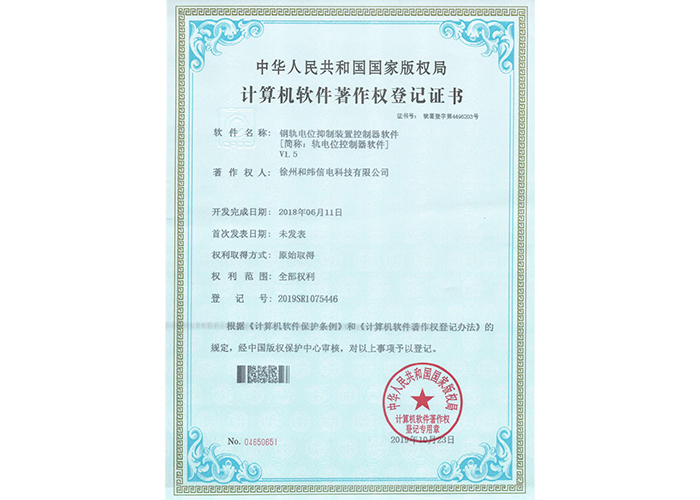 • 10軟件產品登記證書——和緯信電HSCC-2型排流控制器軟件V1.2